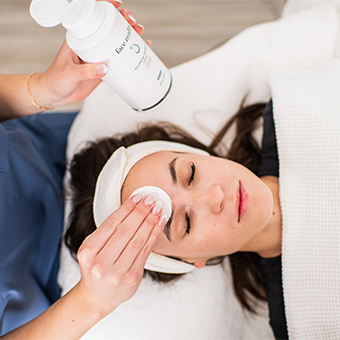 The pores are now softened from the enzyme. Perform extractions then wipe the face thoroughly with Sal-C Toner to disinfect. You may perform High Frequency if appropriate. Apply Soothing Radiance Toner in place of Sal-C Toner for pregnant or nursing clients.
